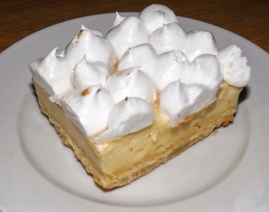 Verter la crema sobre la base FRÍA y volver a hornear a 160ºC durante 45 minutos, o hasta que los bordes empiecen a despegarse de la bandeja y el centro esté un poco gelatinoso.