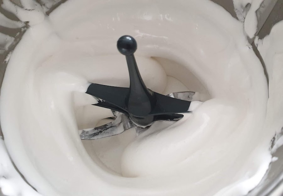 7. - Montamos las claras de huevo con el azúcar, hasta que estén bien firmes, cuanto más tiempo las batáis, mejor. Y cubrimos la tarta con el merengue.