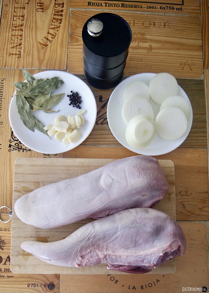 En cuanto a los sabores en la bolsa del vacío, puedes poner la lengua sola y de ahí para arriba, es decir, los sabores que quieras añadir, en este caso usamos el infaltable laurel para una lengua, cebolla previamente “tostada” para que aporte más sabor, unos ajos y pimienta negra que restan esos aromas y sabores punzantes que puede tener la lengua, lo demás es de broma, esta receta es más fácil que multiplicar por cero, una vez más te dejamos sin excusas para que no cocines y si crees que la lengua tiene una textura rara, un sabor feo o te da ese “no se que que” para no comerla, déjame decirte que te vas a perder una de las 2 o 3 mejores texturas de carne que vas a comer en tu vida y sin duda uno de los mejores sabor que podrás probar, déjate ya de tonterías y a cocinar como la gente seria, no te asustes con la cantidad de pasos de la receta, mucho paso, pero todo muy fácil. Yo voy a aprovechar y haré 2 lenguas, una me la guardo para otro día, pero te dejo la receta para una lengua de aproximadamente un kilo y medio.