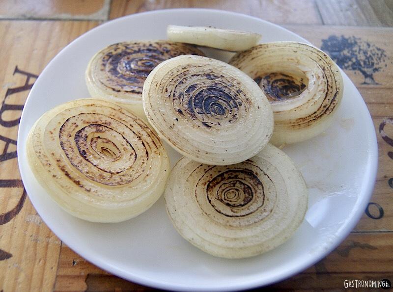 1. Programamos el circulador sous vide a 75ºC – 167ºF.2. Mientras, vamos a dorar las rodajas de cebolla en una sartén muy caliente con unas gotas de aceite de oliva por ambos lados y las reservamos.