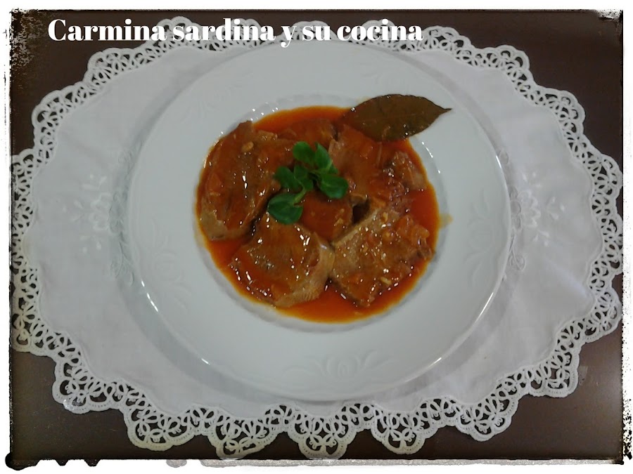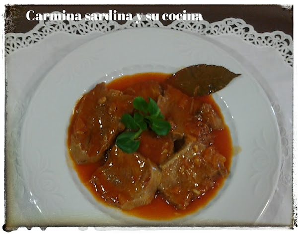 Echar el sofrito a la olla, rectificar de sal. Colocar la lengua fileteada de forma que quede cubierta por toda la salsa.