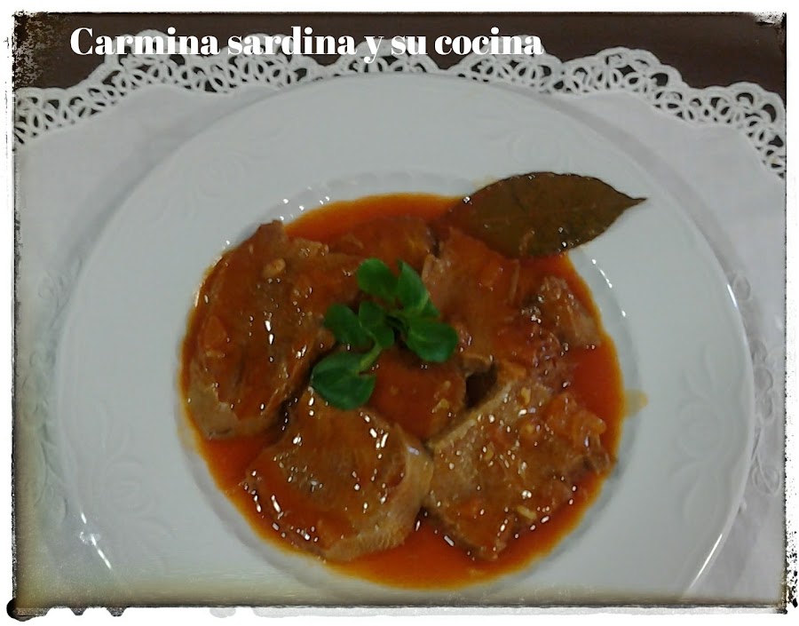 Una vez fría la lengua, la pelamos y la fileteamos (como un dedo de grosor) reservamos.