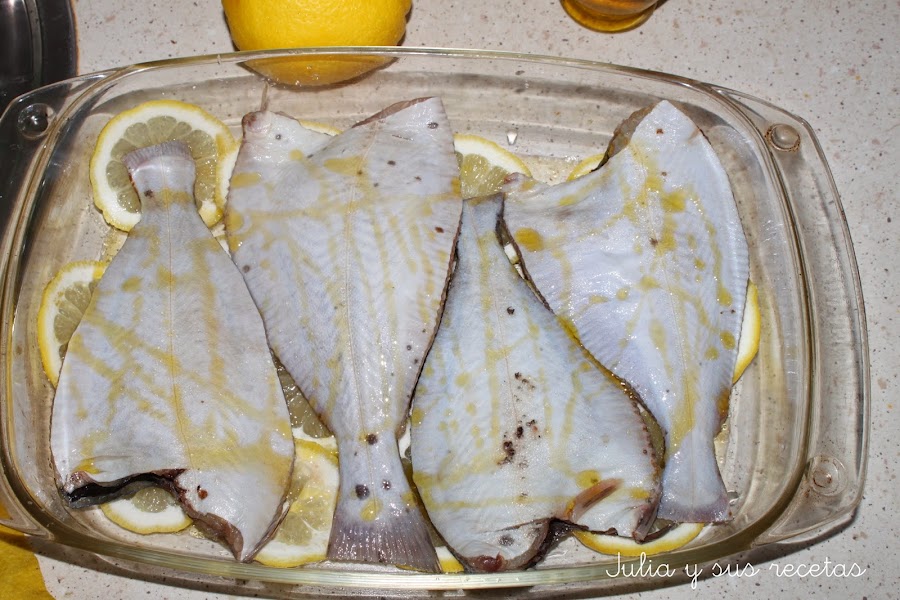 Lavamos el pescado y le ponemos sal. Los ponemos encima de los limones y les echamos el zumo de limón por encima y un chorrito de aceite de oliva.