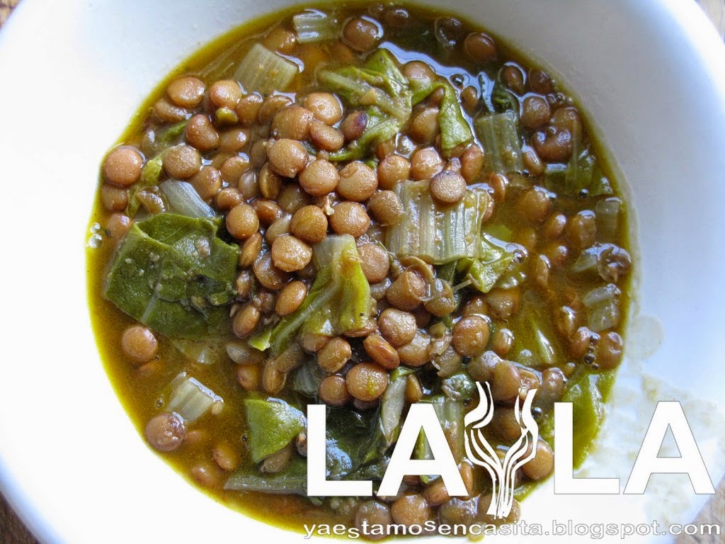 Se ponen las lentejas remojadas previamente 12 h en agua fría junto con el resto de los ingredientes (menos la sal) en una olla de barro o de hierro, se tapa y se pone a cocer a fuego lentísimo durante 3 h (en Ollamatic o slow-cooker 4 o 5 horas posición máximo), debe hacer chup chup pero sin agresividad, piano piano?