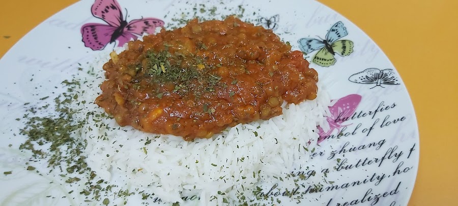 Ahora vamos a preparar el arroz basmati según las instrucciones que vienen en el paquete. Una vez listo, servimos nuestras lentejas con el arroz colocado debajo o bien mezclándolo todo.