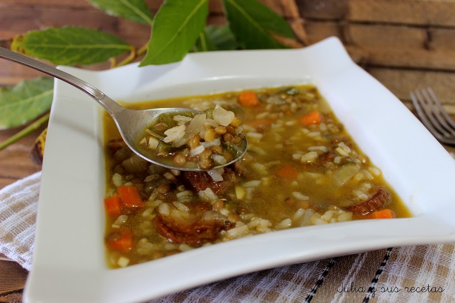 Hoy tenemos un guiso tradicional, de cuchara...de esos que nos llenan de nutrientes y son buenísimos para nuestro organismo. Unas lentejas con arroz.