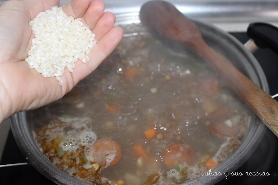 Dejamos que hiervan 15 minutos y añadimos el arroz.