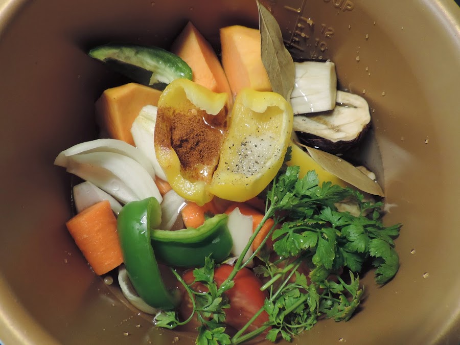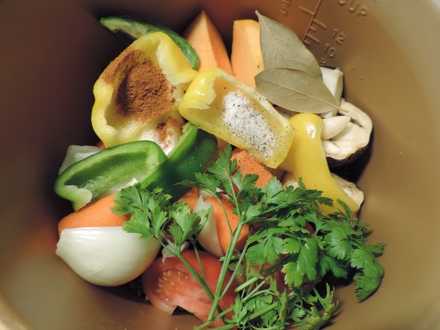 Las verduras, perejil, sal, pimentón dulce y laurel.