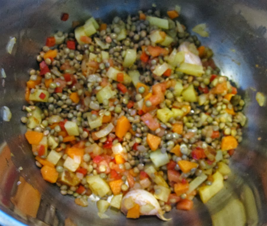 - Lentejas pardinas (1 puñado por persona. El resto de ingredientes lo he calculado para 3 raciones aproximadamente).