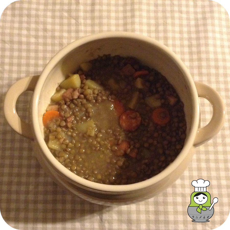 Nosotras hemos usado la variedad de lenteja verdina que cuece bastante rápido así como la pardina (tanto que en realidad no hace falta ponerlas en remojo. De todas formas yo prefiero hacer este paso). Si escogéis otra variedad, como la rubia castellana, tendréis que aumentar el tiempo de cocción porque es más dura.