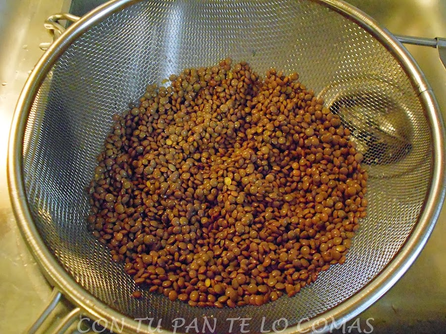 1. Lavamos las lentejas debajo del grifo y las dejamos escurrir.