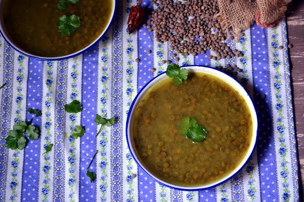 Bueno, que pongo la receta, que me lío yo sola... Está inspirada en un libro de cocina india de la editorial Parragon. Aunque, modificada y con lentejas pardinas (que son las que uso casi siempre). Las cantidades las he intentado aproximar, porque estos platos suelo hacerlos "a ojo".