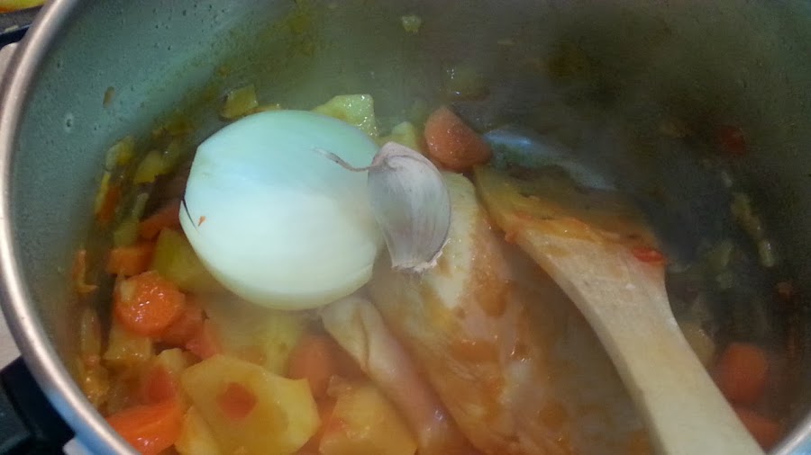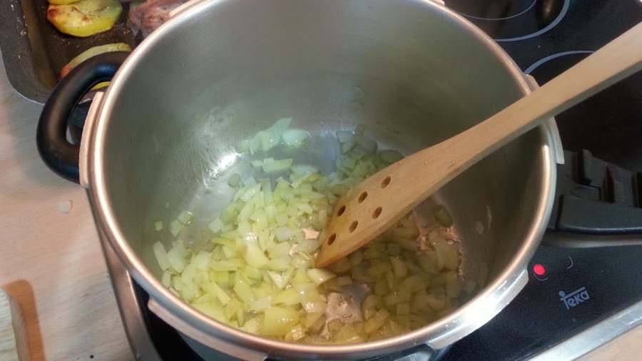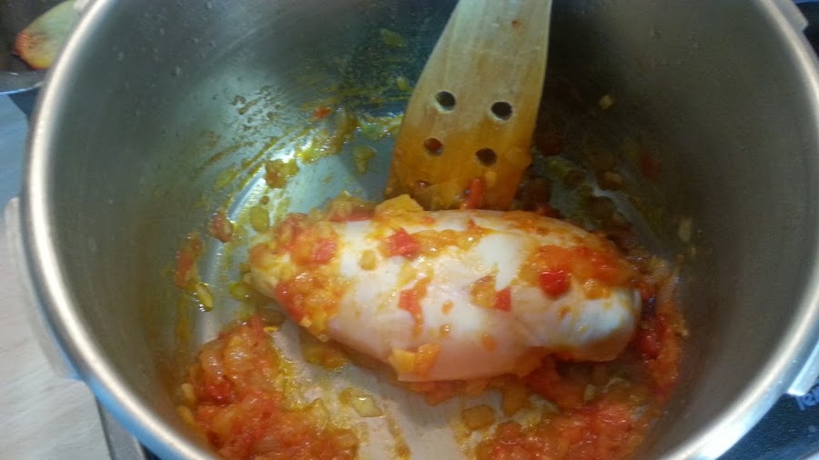 y moveis de ve en cuando, eso si, no dejeis de mover el sofrito que se os pega