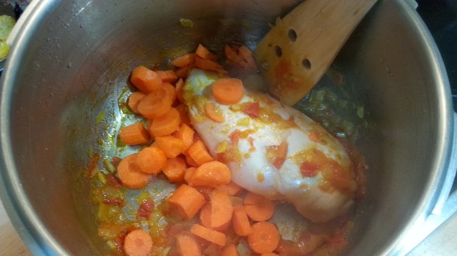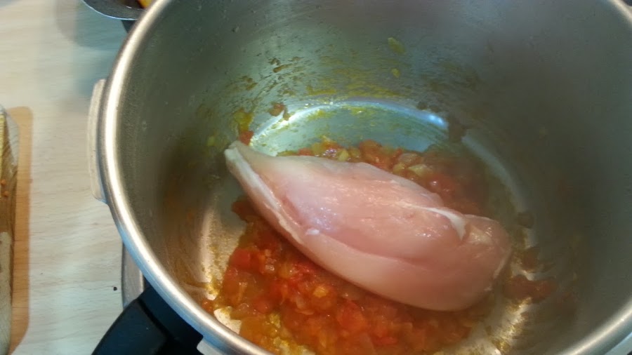 añadis la pechuga y la sellais, es decir, la freis un poco por fuera, la salais