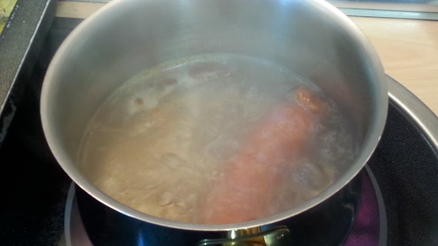 en otra cazuela meteis elchorizo y lo coceis un poco para que suelte la grasa ahi y no en el guiso