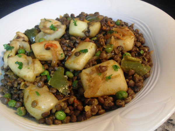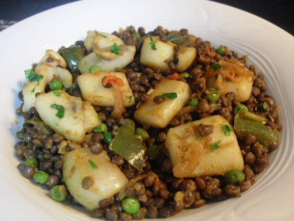 Si gustan más caldosas las lentejas, añadir más caldo de pescado.