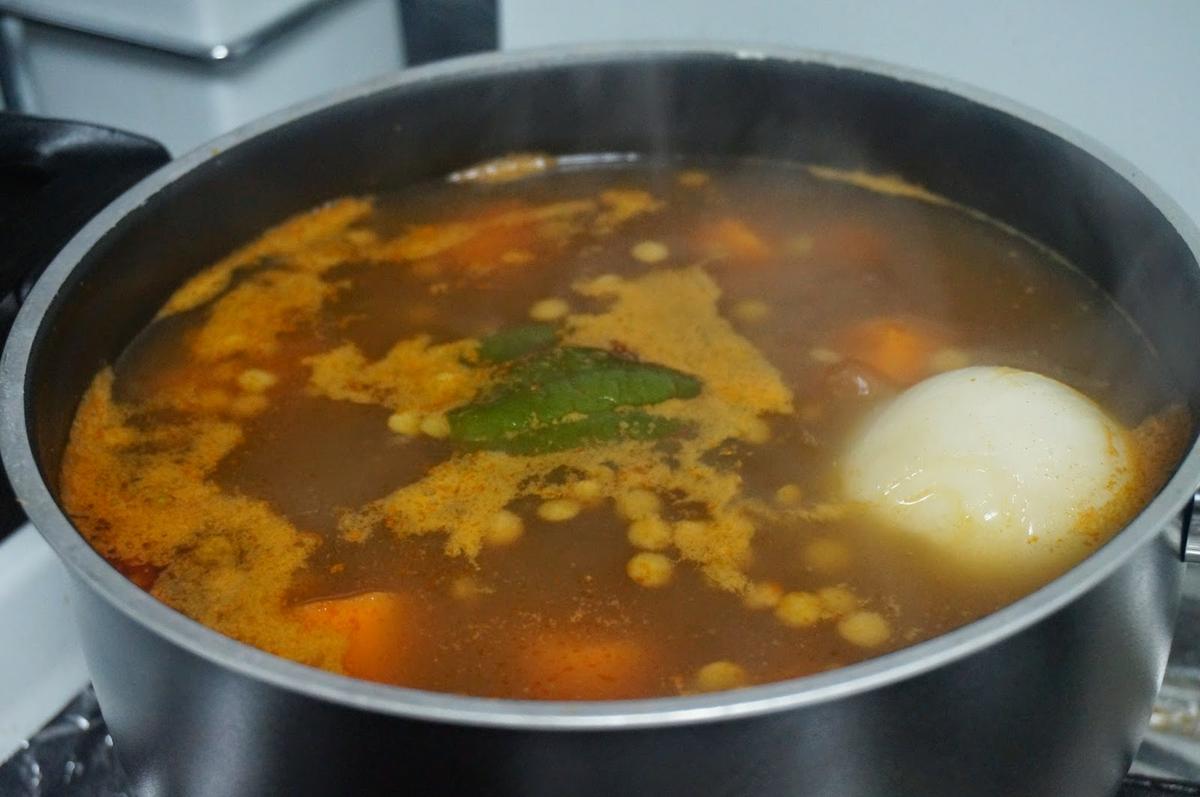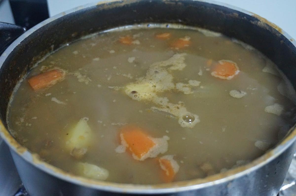 -También podéis chafar unas cuantas patatas y así el caldo queda más espeso.