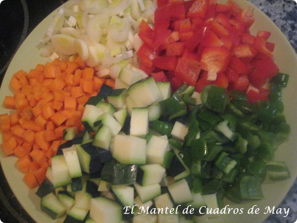 Se limpian y pican las verduras a cuadraditos pequeños.