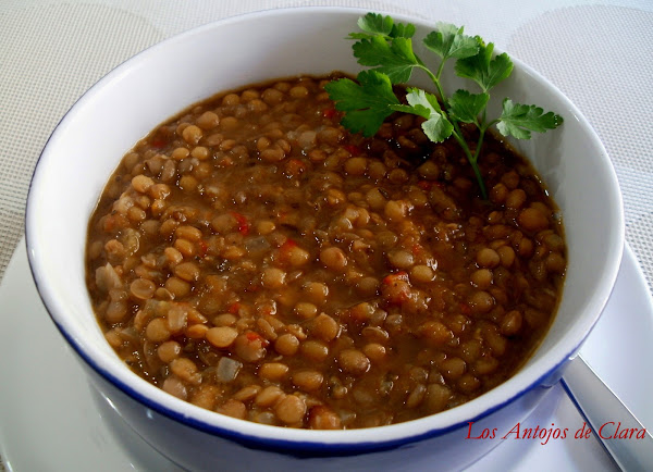 En la receta he usado lentejas tipo Lanzarote, son pequeñitas como las pardinas y tienen una bonita tonalidad que va desde el verde claro hasta el dorado. Esta variedad me gusta mucho porque se cocina en menos tiempo que las de mayor tamaño y al final de la cocción se ven enteras y suaves. También son ideales para preparar ensaladas, se las recomiendo! Recuerden que me pueden encontrar en facebook.Los invito a visitar mi blog --> Los Antojos de Clara.
