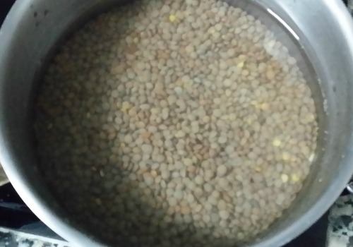 - Enjuaga las lentejas y ponlas en una olla de presión (de cocción rápida en mi caso).