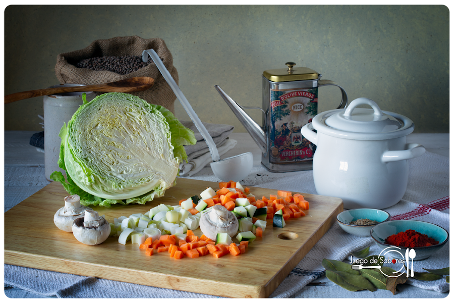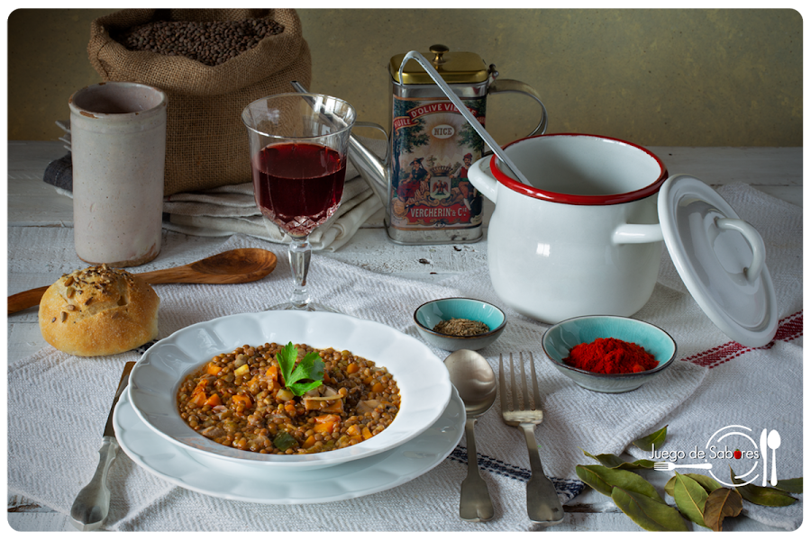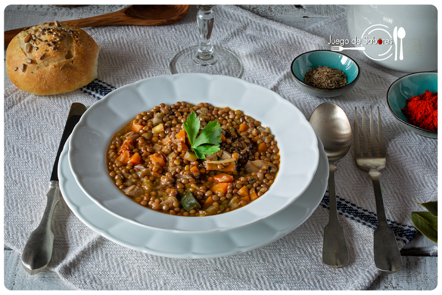 Es conveniente poner las lentejas a remojo en agua fría como mínimo 1 hora, al hidratarlas con agua fría aumentan de volumen y la piel no se desprende al cocerlas. Retirar el agua y lavarlas bien con un colador.