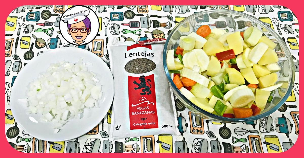 Yo he usado lenteja pardina con lo cual no las he puesto en remojo simplemente las he pasado debajo del grifo con un colador para quitarle las impurezas que pudiera tener