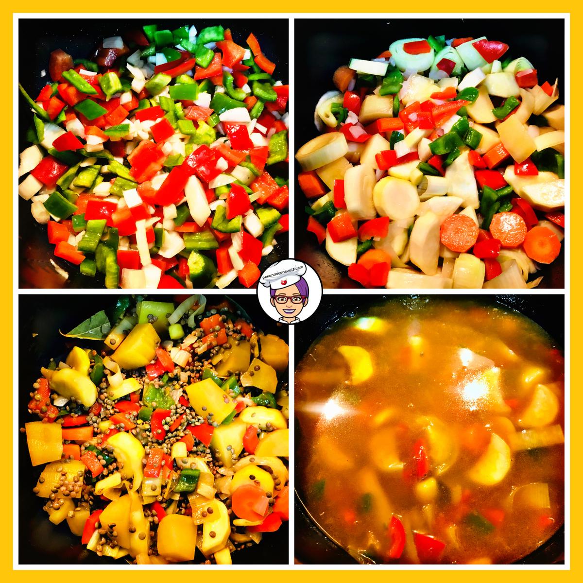 En mi casa es la primera vez que las hago solo de verduras normalmente las hago con su chorizo, tocino, costillas pero mi hijo se quiere cuidar un poco y evitar grasas así que me pidió que si se las podía hacer solo de verduras.