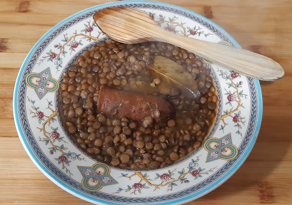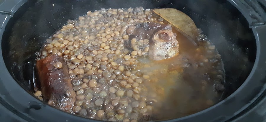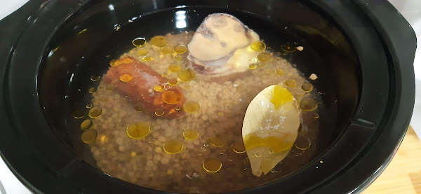 1.- Lavamos en agua fría las lentejas y las ponemos en la olla, junto con el resto de los ingredientes.