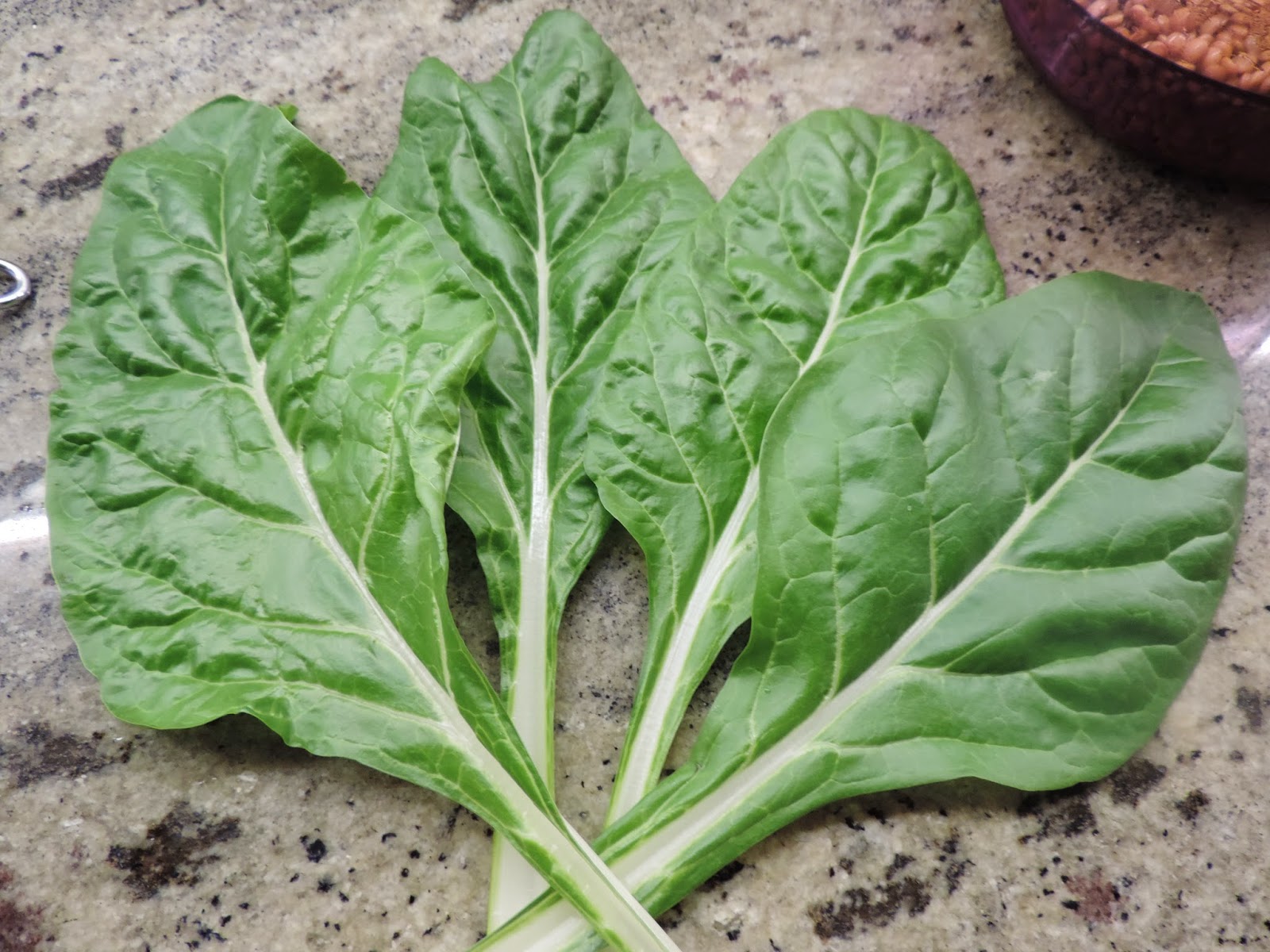 Las hojas de las acelgas, las he cogido de una maceta que tenemos en la terraza, son ecológicas como dice mi madre.
