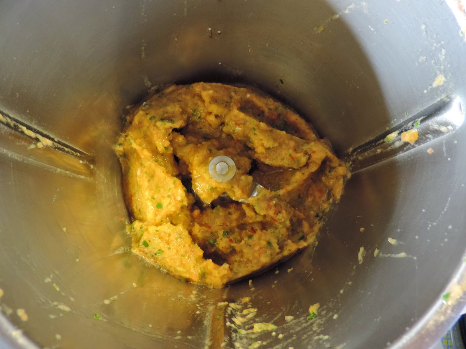 Voy a picar algunas de las verduras, para que no se noten y los que no les gustan mucho se las coman mezcladas con las lentejas. Picamos la cebolla, 50 grs. calabaza, 25 grs. judías verdes, tomate, los pimientos, perejil, ajo.