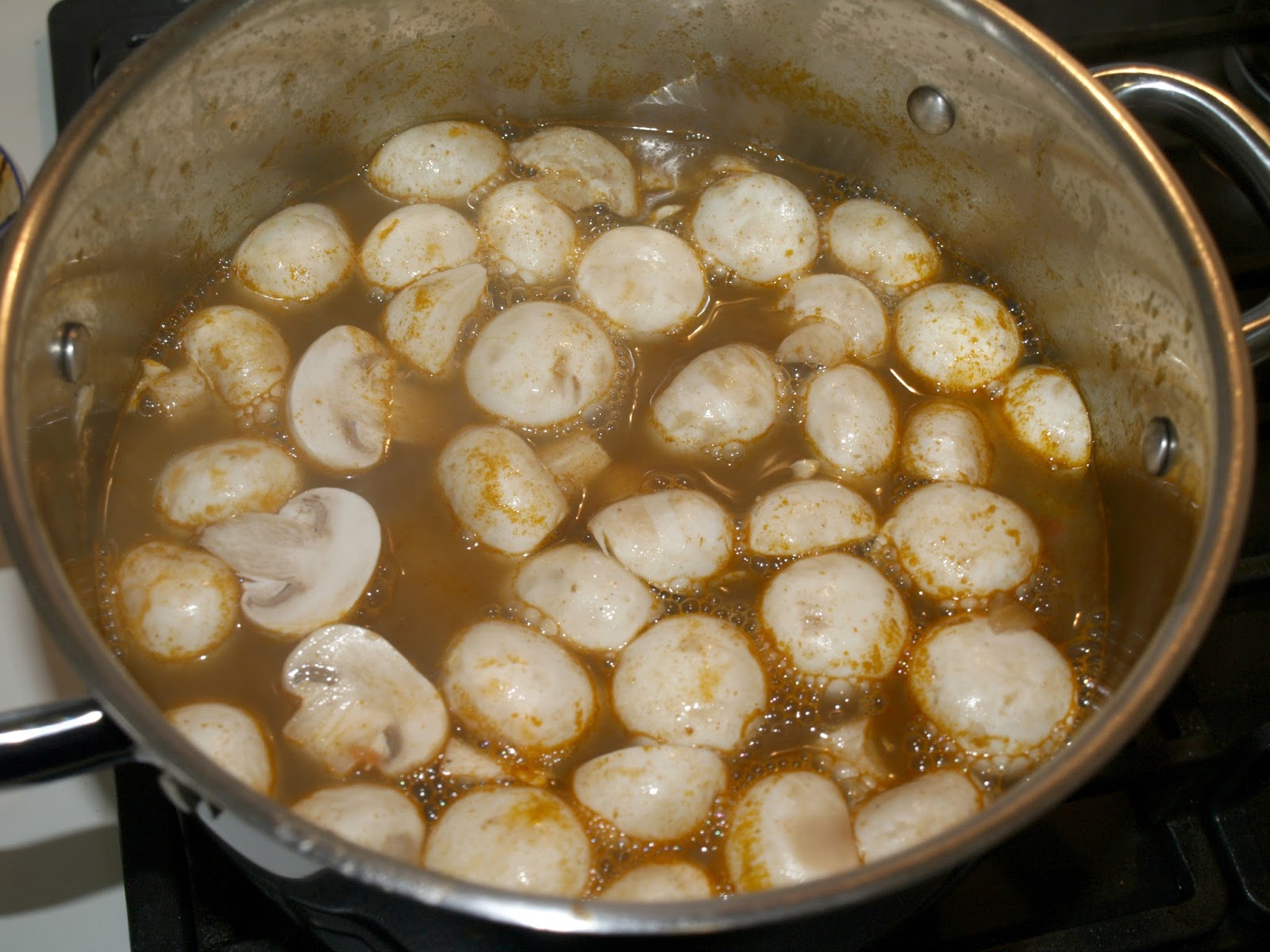 - Ponemos al fuego y cuando rompa a hervir, lo bajamos a fuerza media-baja, para que se vaya haciendo poco a poco. Pasado un tiempo, cuando las lentejas estén a medio hacer o algo más, añadimos los champiñones lavados y crotados.