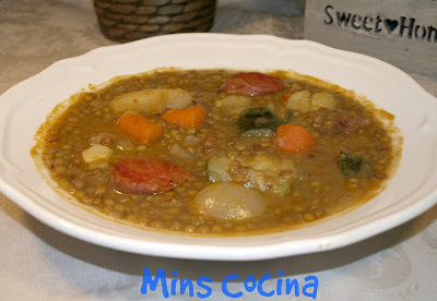 Lentejas (cantidad según número de comensales. Yo no se medirlas. Siempre hago de más... esta vez sin ir más lejos, hice para todo un regimiento, jeje!)