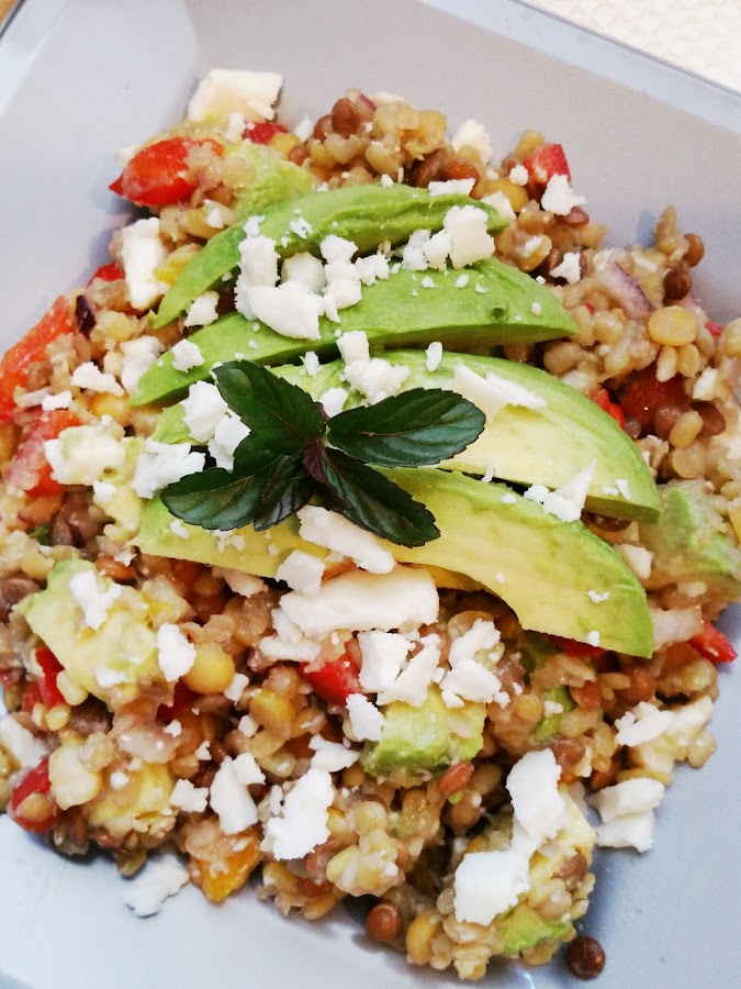 LENTEJAS LIBANESAS Y PIMIENTOS ROJOS CON AGUACATES.