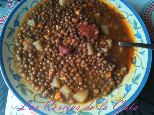 Antes de hablar de la receta ¿por qué lentejas, de entre todas las legumbres que hay? Resulta que, aunque no a todo el mundo gusten, las lentejas son mis legumbres favoritas y he de agradecerle a mi suegra el haberme enseñado cómo hacerlas. Siempre he pensado que pocas recetas hay tan tradicionales como las imaginamos, en tanto en cuanto cada cuál decide preparar cualquier plato a su gusto. Y yo he aprendido a hacerlas de una manera más bien cántabra, puesto que mi maestra lo es, aunque una vez más he tenido que recurrir a ciertas variaciones de ingredientes, guardando en todo caso el truco que ensalza el sabor de este rico plato de cuchara.