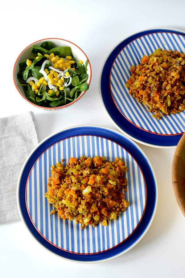 Ademas he añadido cúrcuma y comino en polvo que combinan perfectamente con las lentejas, dándoles el toque oriental que tanto me gusta!!