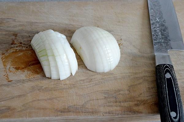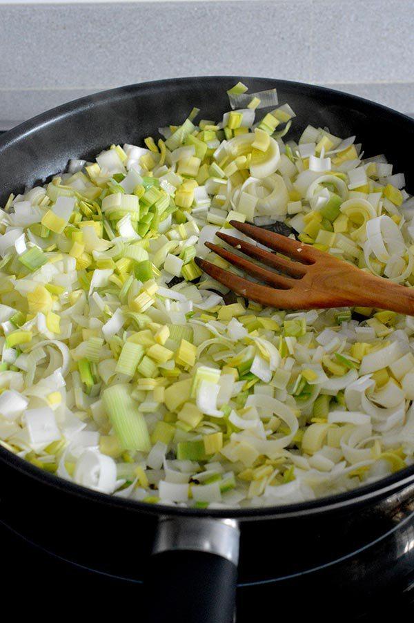 La sofreímos en una sartén junto con un chorrito de aceite de oliva a fuego medio.