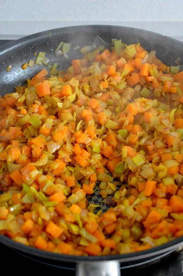 Las añadimos al sofrito y las salteamos durante 5 minutos mas, removiendo frecuentemente!