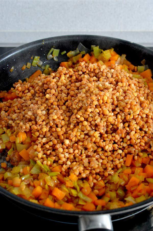 Estas lentejas son perfectas para comer como plato único con un método de distinto de prepararlas, pero con los ingredientes clásicos, que nos asegurar una combinación de sabores perfecta!! Es una receta rápida ya que usamos lentejas previamente cocidas, ademas están salteadas que es una manera diferente de comerlas!