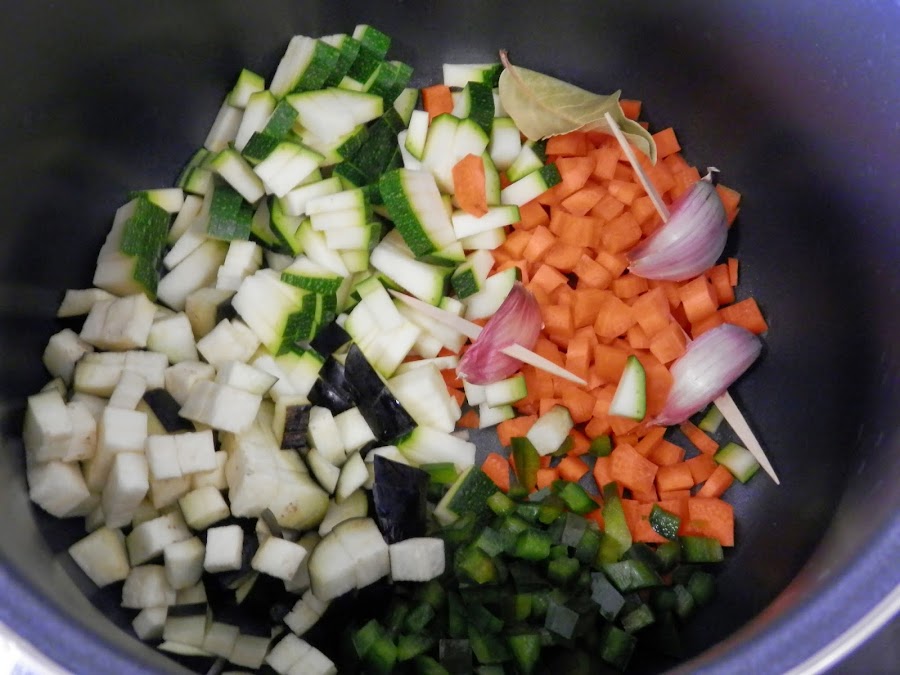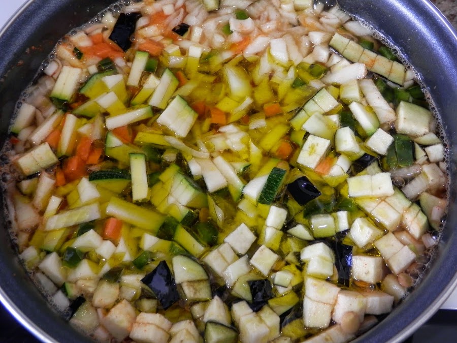 Picamos la cebolla, el calabacín, la berenjena, los pimientos.