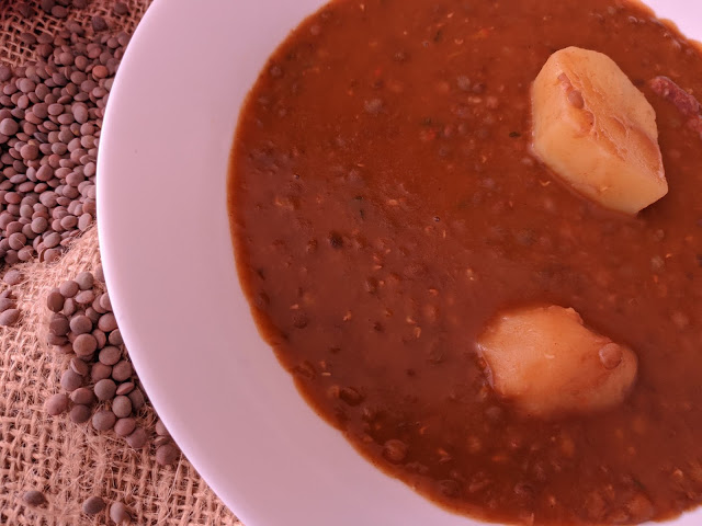 Cuando halla pasado media hora hirviendo , volcamos las lentejas y cerramos la tapadera de la olla.