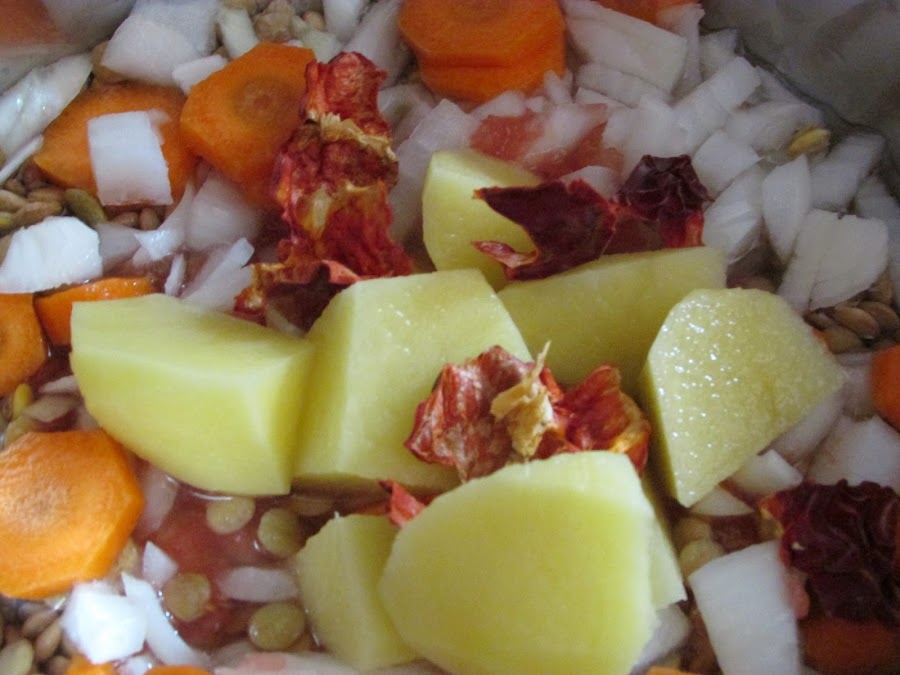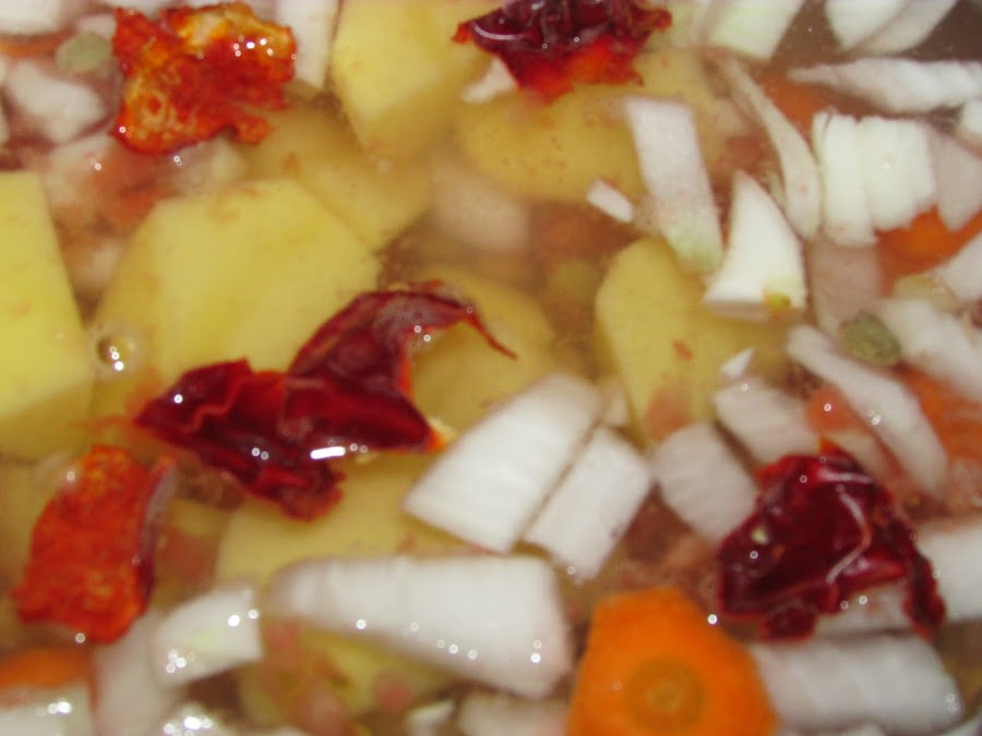 la zanahoria, la patata y la ñora troceada
