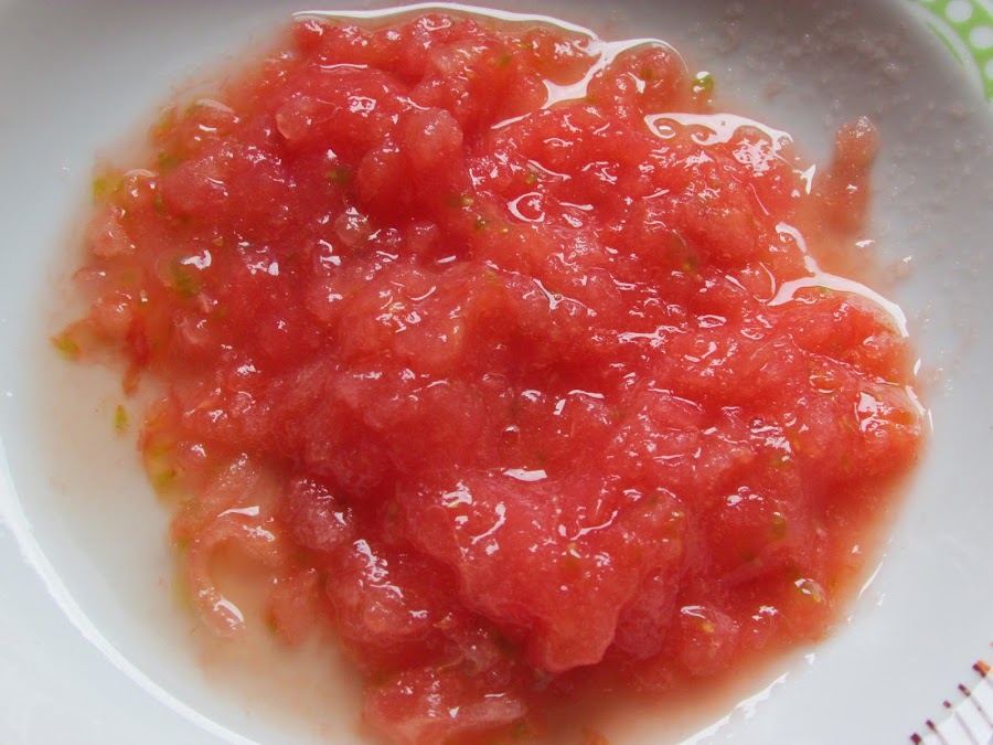 Ponemos en la olla las lentejas ( escurridas del agua del remojo), los ajos, el tomate rallado