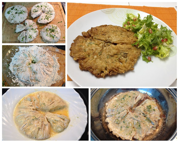 Pasamos por harina y huevo y freímos en aceite caliente.