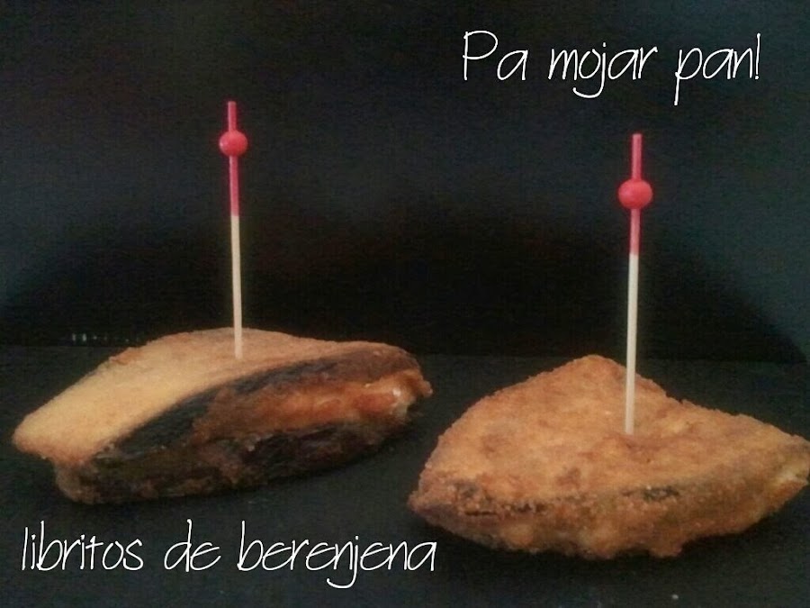 Calentamos en un cuenco abundante aceite de girasol y cuando esté muy caliente, freímos los libritos 1 minuto, el tiempo justo para que queden crujientes y no se quemes (hemos de tener en cuenta que la berenjena ya la habíamos cocinado previamente).