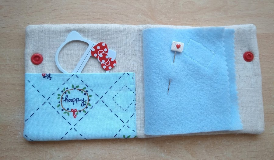 Le hice un bolsillito para guardar una tijerita y unas bobinas con hilos.