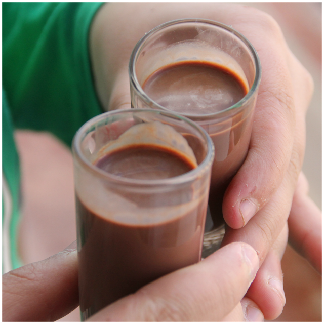-Echamos el el vaso la leche, ron y el chocolate.