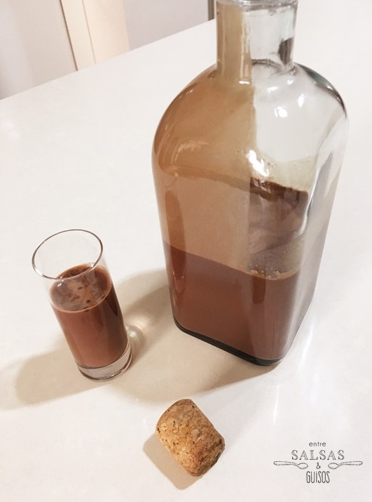 ¡ Una receta para los amantes de chocolate ! Me apetecia probar otro licor casero, dentro de nada estamos con los regalos y esas cosas, la verdad regalar un licor casero en una botella bien bonita es un buen detalle, así que hice la prueba. Con tres simples ingredientes y un minuto de nuestro tiempo tenemos un delicioso licor de chocolate. No es necesario la Thermomix ® para nada, con una batidora se hace perfectamente.Vi la receta un un canal de Youtube "La cocina de Sandy", asi que miré despensa y mueble bar y manos a la obra.
