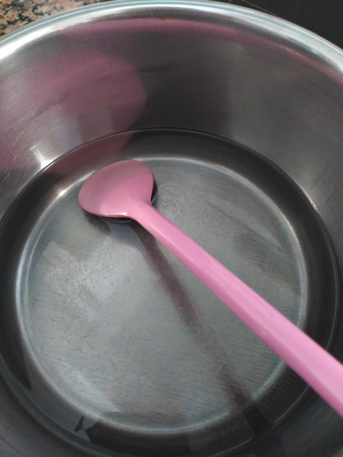 Calentar el agua y el azúcar hasta que esta última esté totalmente disuelta, dejar enfriar.