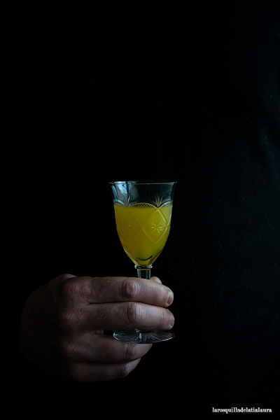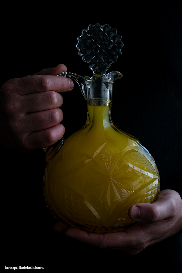 El color que tiene es delicioso, perfecto para las fotos con la licorera y copitas de mis abuelos verdad?. En la foto del tarro podéis apreciar como queda el acohol antes de colarlo y tras los dias de maceración.