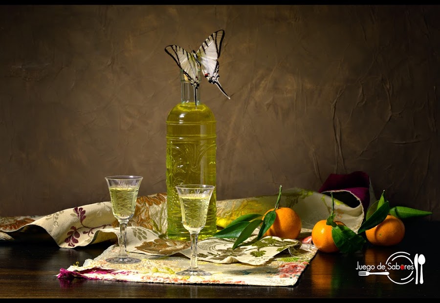 Llegué tarde. Me entretuve acicalando y ejercitando mis bonitas alas de colores y cuando me di cuenta ya habían cerrado la botella. Frustrada, tuve que replegar mi larga trompa enrollable en espiral con la que libo el néctar de las flores que polinizo. Me posé sobre el tapón esperando a que los humanos se decidiesen a servir un poco de licor de mandarina en las copas. Pero no disponía de mucho tiempo porque soy consciente de que mi vida como mariposa adulta es corta. Pronto desaparecería de este mundo sin haber probado aquello que tanto había llamado mi atención. Tenía junto a la botella unas mandarinas que habían sobrado, pero lanzarme sobre ellas no era lo mismo que probar el licor. O sea que me propuse esperar y obtuve la recompensa. No todo estaba perdido. Desenrollé mi espiritrompa y en un momento de descuido de aquellos seres racionales pude disfrutar de aquel placer de dioses. Ya podía emprender el vuelo hacia lo desconocido.